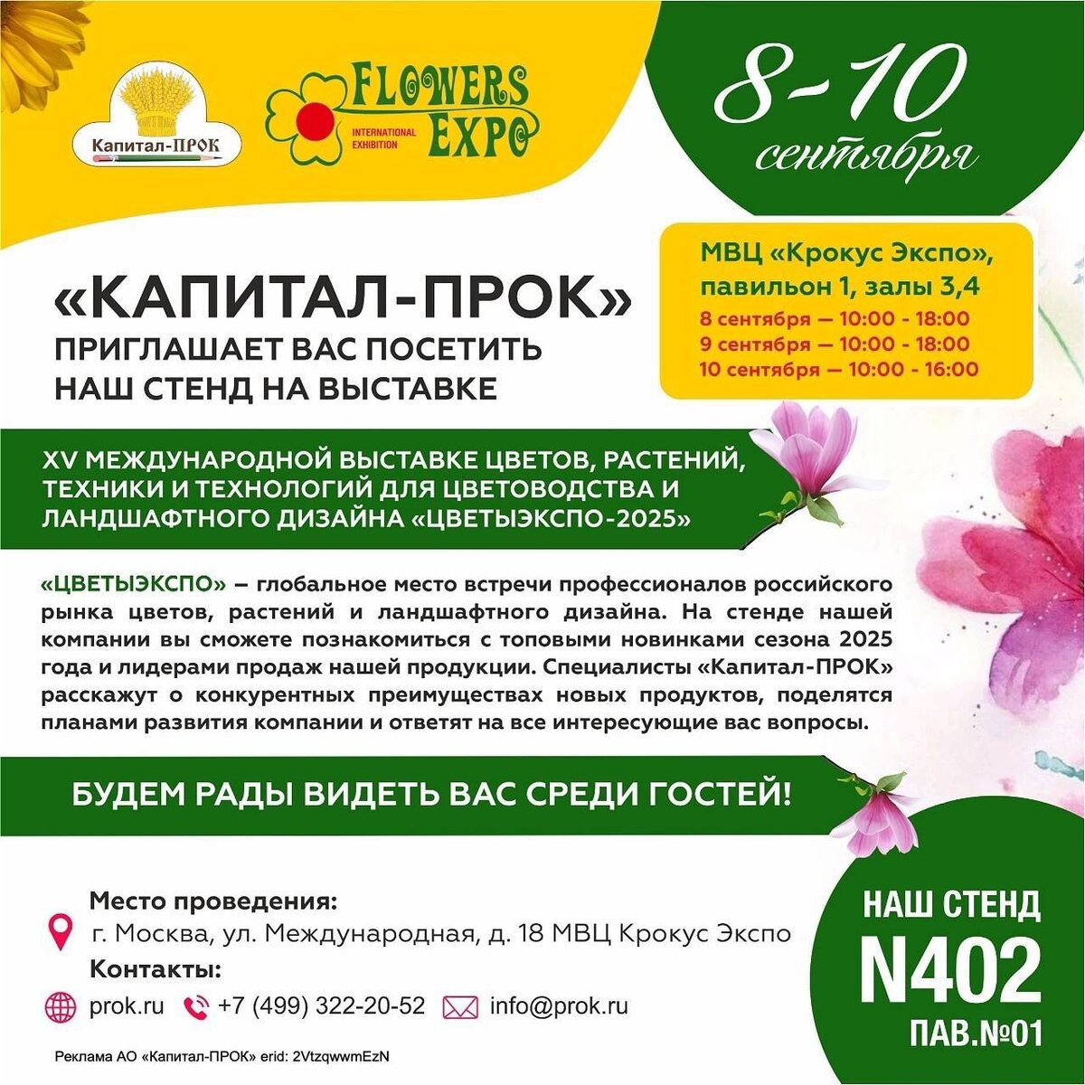 Компания «Капитал-ПРОК» приглашает посетить стенд № 402 на выставке «ЦветыЭкспо-2025