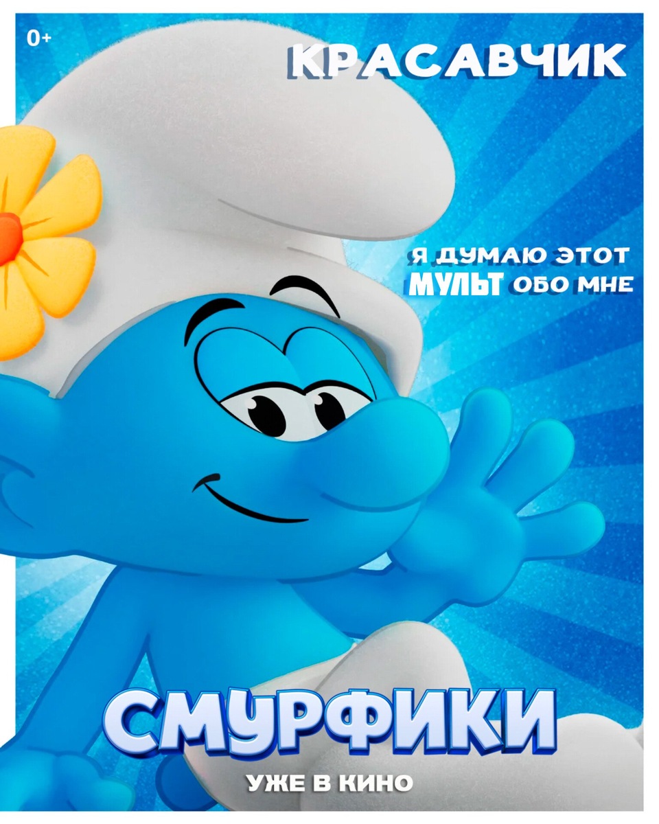 Красавчик — влюблённый сам в себя смурфик. Постоянно смотрит на себя в зеркало и никогда не выпускает его из рук. Считает себя самым красивым смурфиком в деревне. «Смурфики» уже в кино❗0+ 🎞🎞🎞🎞🎞🎞🎞🎞🎞🎞🎞🎞🎞 #СмурфикивКино #анимация #фэнтези #комедия #мюзикл #приключения #семейный #крцмосква #каспийск