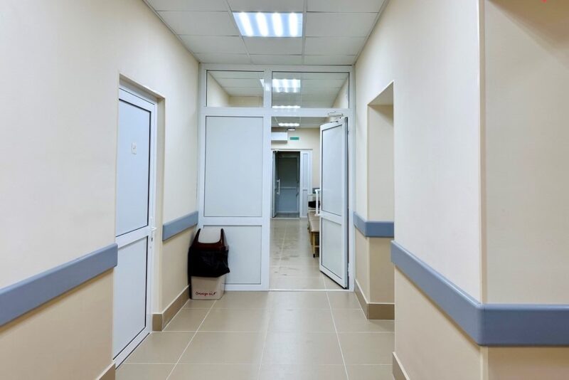 В здании располагаются женская консультация и стоматологическое отделение В Межрайонной больнице № 7 города Шумихи продолжается капитальный ремонт второго этажа поликлиники. Как сообщает областной департамент здравоохранения, работы проводятся в рамках модернизации первичного звена здравоохранения национального проекта «Продолжительная и активная жизнь». «В рамках капитального ремонта выполняются следующие работы: демонтаж и монтаж пола, демонтаж стен, замена электропроводки, укладка плитки на пол. На втором этаже располагаются женская консультация и стоматология, поэтому качественный ремонт здесь особенно важен для комфорта пациентов», — рассказала исполняющий обязанности главного врача Межрайонной больницы № 7 Татьяна Бартасова. Также в Шумихинском округе установлены новые ФАПы в селах Стариково и Большая Рига. Выполнен ремонт поликлиники для взрослых и кровли административного здания больницы. Медучреждение оснащено современным оборудованием, включая компьютерный томограф, флюорогра