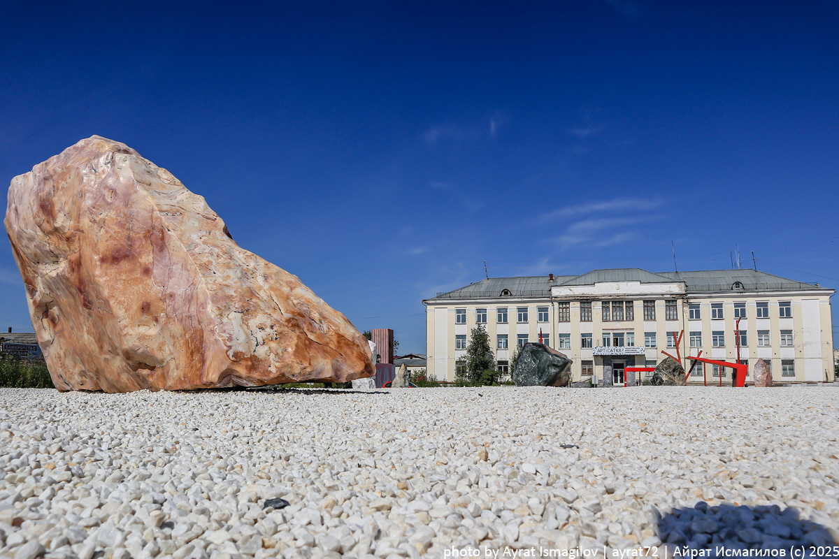 Не все, конечно, однозначно, но общее впечатление Сатка производит благоприятное, какое-то обнадеживающее что ли. Чего не чувствуешь в соседних Златоусте и Миассе, городах чуть более известных при этом. Если кратко, то Сатку можно описать так: в самом ее центре находится огромный Карагайский карьер, который разделяет два значимых района города - Старый Город и Поселок Магнезит, в обиходе просто Поселок. Вот так вот, не смотря на то, что Сатка получила статус города в 1937 году, здесь до сих пор поселок. Мы заехали со стороны Старого Города. Проехали "Сонькину Лагуну", старый завод, городской пруд и оказались в Поселке. Позавтракали в приятной, но не очень бюджетной, блинной. А после завтрака, оставив машину на парковке, прогулялись по району. Панорамы улиц, в общем-то, привычные для промышленных городков Урала. На улицах с советской архитектурой современные малые формы. Красные фонарные столбы, в частности. Получилась местная "улица красных фонарей", только все в рамках приличий :) И ч