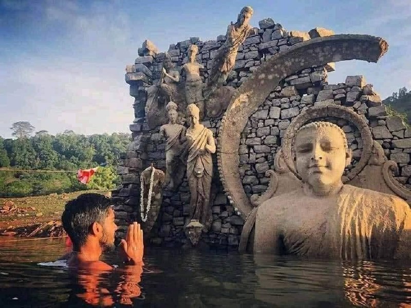Kadadora Viharaya 🎆Храм в долине Котмале, недалеко от Нувара-Элии. Он оказался затоплен при строительстве водохранилища в 1980-х годах и большую часть года скрыт под водой. Увидеть храм можно только в сухой сезон, когда уровень воды падает. Тогда из озера появляются его руины – редкое и необычное зрелище. 🎆 Лучшее время для поездки – январь–март. Шри Ланка с любовью
