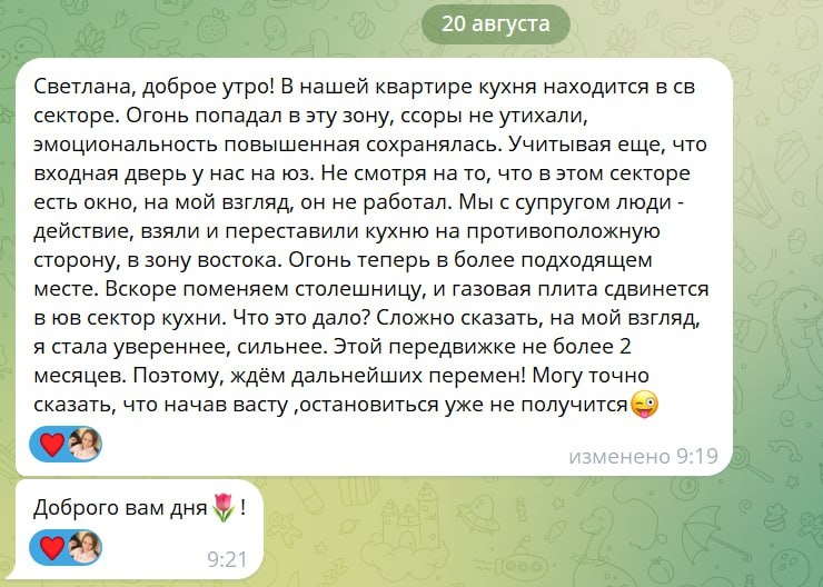 ☀️ Татьяна с супругом действительно сразу воплощают в жизнь коррекции пространства и поэтому перемены к лучшему в их жизнь приходят гораздо быстрее.