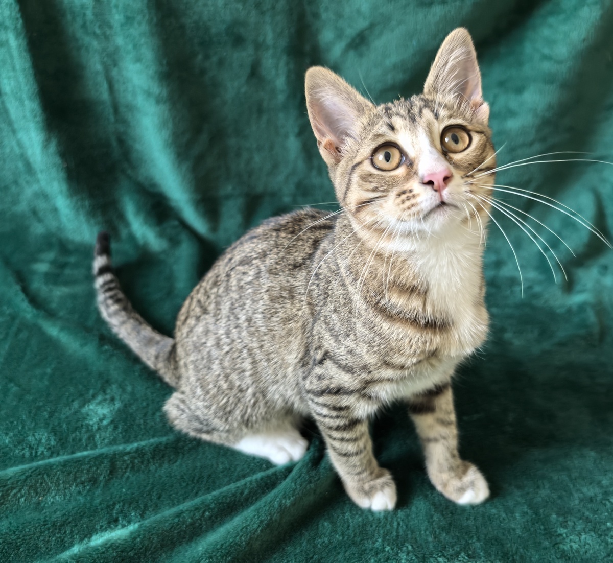 Милое создание с грустными глазами — это маленькая Руся. Кошечка-полосатик, которую вместе с сестрицей Марусей вынесли со всем приданым в подъезд в надежде, что судьба сведет их с добрым человеком. Так в принципе и случилось. Котят забрали. И нашли временный дом. Природа наделила Русю амплуа грустного мима, придав ее «личику» печальное выражением. Но вы не верьте! По характеру она веселая и игривая. Обожает гонять мелкие игрушки по полу, носиться со своей сестренкой вверх и вниз по комплексу. В общем, обычный энергичный которебенок. Правда, не из тех, кто лазает по шторам и свешивается из дырки подвесного потолка. Если Вам нужен активный, но в меру, котёнок, при этом ещё и ласковый и очень общительный, то Руся как раз подойдет самым лучшим образом. Ей 4.5 месяца. Она чистоплотная девочка, лотком (с наполнителем) пользуется исправно. Приучена к промкормам высокого класса, любит и сухой корм, и влажный. Если надумаете кормить её мясом, отказываться не будет 🤭 С сородичами дружна, собак