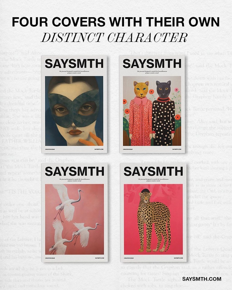 #АРТпродукт БЛОКНОТ SAYSMTH 🟰🟰🟰 Кажется, что ещё можно придумать на тему блокнотов. Ну, например, вот. Блокнот - журнал. В котором есть огромный простор для записей, красивые принты, открытки, планер, всякие разные игрухи и несколько видов обложек. Стоит такой €43 и только под заказ, ибо каждый дроп раскупается очень быстро. Вот такая полиграфия 🍀 МЕРЧ ХУДОЖНИКА