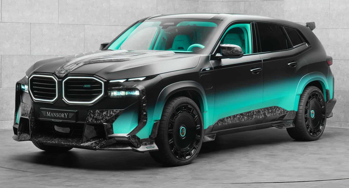 Тюнинг-ателье Mansory вновь вернулось к модели BMW XM с самым смелым и экстравагантным преображением на сегодняшний день. Если предыдущие попытки выделялись лишь некоторыми изменениями, то сейчас речь идёт о масштабной трансформации, которая бросается в глаза и заставляет пересмотреть представление о том, каким может быть этот кроссовер. В основу лёг оригинальный BMW XM — мощный SUV с двухтурбинным V8 объёмом 4,4 литра, который разгоняется до 100 км/ч примерно за 4,1 секунды. Mansory, по всей видимости, не стал трогать мотор, предпочтение отдав радикальным изменениям дизайна и интерьера. Внешне автомобиль поражает необычными цветовыми решениями: матово-чёрный и бирюзовый оттенки разбавлены элементами из выкованного карбона. Передний бампер с расширением и загадочные «крылышки» у фар заставляют по-новому взглянуть на агрессивный образ кроссовера. Колёсные диски диаметром 23 дюйма получили бирюзовые колпачки, а фирменные значки Mansory — контрастно красные, что добавляет некой диковатост