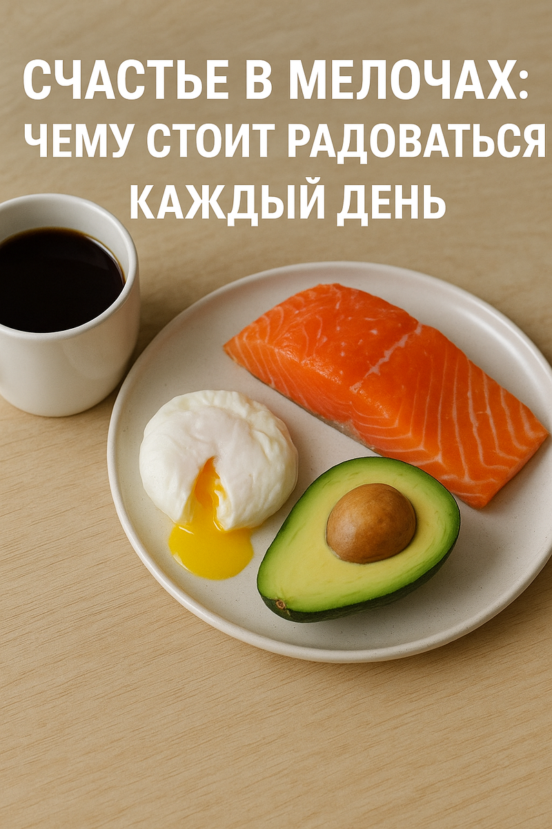 Мы часто ждём чего-то большого: повышения, новой квартиры, путешествия или долгожданной встречи. Кажется, вот тогда-то и наступит настоящее счастье. Но если задуматься, самые яркие моменты часто прячутся в мелочах, которые мы легко не замечаем. ☕ Утро начинается не с будильника Знакомо чувство, когда открываешь глаза и понимаешь: можно позволить себе лишние пять минут тишины? Горячая кружка кофе или чая в руках — это уже маленький праздник, который задаёт настроение на день. А ещё счастье — когда утро начинается с красивого и вкусного завтрака. Например, с красной рыбкой, авокадо и нежным яйцом пашот. Это не просто еда, а целый ритуал заботы о себе. Я расскажу, как готовлю яйцо пашот в домашних условиях без лишних хлопот. Берём обычный целлофановый пакет, тарелку, подсолнечное масло и яйцо. В пакет капаем каплю масла, аккуратно разбиваем туда яйцо. В кастрюльке доводим воду до кипения и опускаем туда пакет. Засекаем ровно 2 минуты. Достаём пакет — и на столе у вас яйцо пашот, ничем