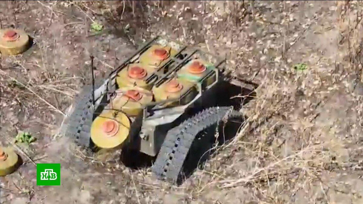 [ Смотреть видео на сайте НТВ ] Российские военные всё активнее используют в зоне СВО роботизированные комплексы: они обезвреживают мины, доставляют припасы и порой спасают жизни. Некоторым из аппаратов операторы даже дают индивидуальные названия в память о погибших товарищах. Вклад, который уже сегодня вносят роботы в разгром противника, с каждым днем всё ощутимее. Роботы группировки «Запад» только за июль развернули свыше 300 метров минных заграждений. На платформу наземного дрона вмещается сразу шесть противотанковых мин ТМ-62. По команде оператора нехитрое инженерное устройство начинает их сброс. Интервал между зарядами бойцы устанавливают сами, все зависит от местности и задачи. Самое главное, что один выезд такого робота заменяет взвод боевых саперов. Используют наземные дроны бойцы 45-й инженерной бригады на самых труднодоступных участках Краснолиманского, Боровского и Купянского направлений. Заметить выезд такой машинки на радиоуправлении даже с воздуха не всегда выйдет. Поэтом