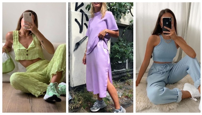 Каждый год определяются ключевые модные оттенки, задающие тон в мире стиля и трендов. Текущий сезон отличается обилием насыщенных цветов. В числе фаворитов — голубой, оранжевый, фиолетовый, зелёный, а также нежные светло-сиреневый и светло-фиолетовый, огненный оранжево-красный и свежий мятный. При создании образа можно использовать разные оттенки одного цвета: например, светло-голубые босоножки на платформе, голубой кардиган и сумочку лазурного оттенка. Сочные цвета также прекрасно сочетаются с белым: синее вязаное мини платье прекрасно дополняется белой хлопчатобумажной рубашкой. Светло-зелёная мини-юбка гармонично смотрится с чуть более тёмным по цвету зелёным вязаным свитером и белыми кроссовками. В деловом образе также легко сочетаются модные цвета: белый и светло-сиреневый. Брюки и пиджак в едва заметно белую полоску дополняет белая маленькая сумочка. Алый деловой костюм с V-образным вырезом можно скомпоновать с бирюзовыми босоножками на каблуке и такого же цвета сумочкой. Можно о