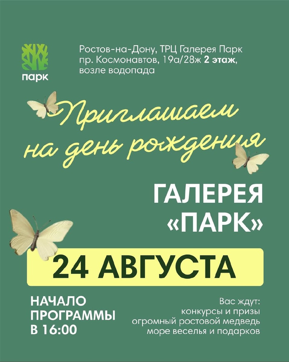 День Рождения ГАЛЕРЕЯ ПАРК 24 августа в 16:00 2-й этаж, рядом с водопадом В программе: Увлекательные конкурсы Подарки для самых активных участников Множество сюрпризов 🫠 Детские мероприятия Ростов-на-Дону. Я местный!