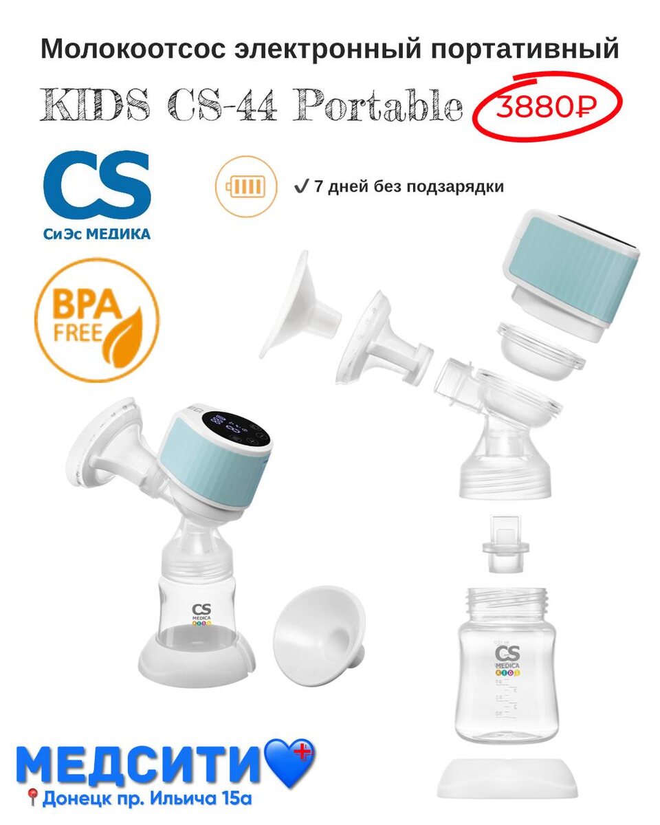 ✅ Молокоотсос электронный портативный CS Medica KIDS CS-44 Portable цена 3880₽ Молокоотсос CS Medica KIDS CS-44 Portable с электронной системой управления облегчает жизнь кормящей мамы. Благодаря конструкции «Всё в одном» без трубок и проводов, компактный прибор со встроенным аккумулятором 1400 мАч можно брать с собой в дорогу и использовать до 7 дней на одном заряде. Скидка 5% за отзыв в Яндекс (по факту в магазине) МЕДСИТИ💙 медтехника🛒 📍Донецк пр. Ильича 15а (напротив больницы Калинина, вход магазина #рукодельница) ☎️ +7 (949) 808-27-72