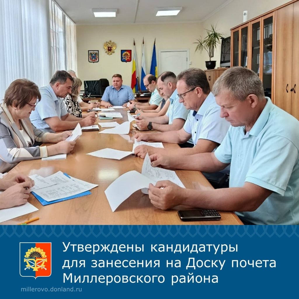 В Миллеровском районе возобновлена традиция размещения на Доску почета фотографий граждан – лучших работников предприятий и организаций. Под председательством главы администрации Олега Коваленко состоялось заседание комиссии по утверждению кандидатур для занесения на Доску почета Миллеровского района. Рассмотрели ходатайства от трудовых коллективов, организаций и органов местного самоуправления. Отобраны 30 кандидатур для занесения на Доску почета в 2025 году. Доска почета будет обновляться ежегодно. Занесение кандидатов на Доску Почета является поощрением граждан за заслуги и высокие достижения.