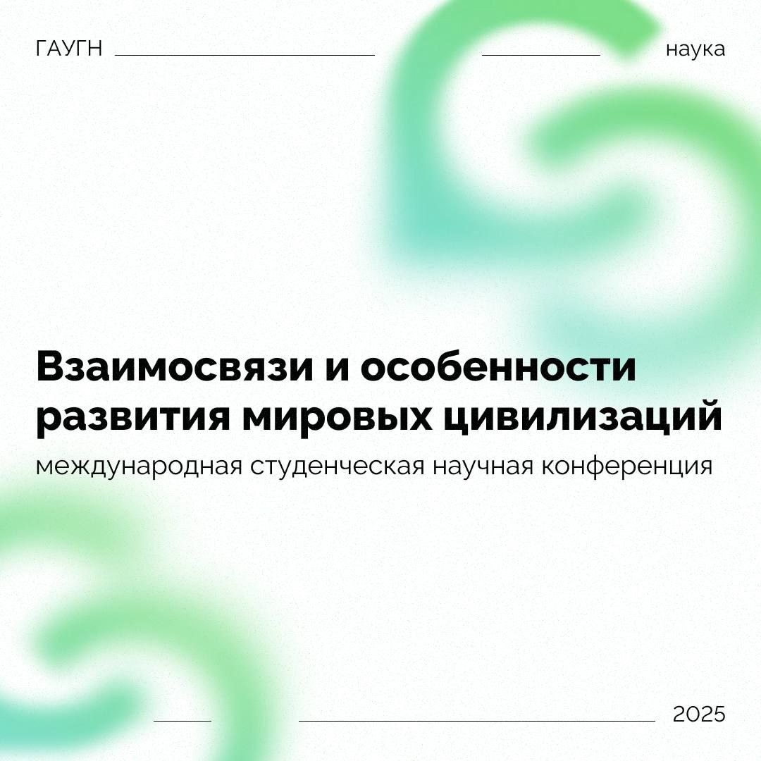 Конференция «Взаимосвязи и особенности развития мировых цивилизаций» ⚡️ 5 и 6 декабря пройдет Международная студенческая научная конференция «Взаимосвязи и особенности развития мировых цивилизаций» под руководством НСО ГАУГН. 🌟 Цель международной научной студенческой конференции заключается в создании платформы для глубокого и многогранного анализа цивилизационных процессов, их философских, исторических, политических, психологических, социологических, экономических, филологических и правовых аспектов. 🔖 Информация об условиях проведения Конференции размещается в официальном сообществе Научного Студенческого Общества ГАУГН. 📌 Для принятия участия в конференции в качестве докладчика следует заполнить регистрационную форму по ссылке до 1 ноября 2025 года. 📌 Для принятия участия в конференции в качестве слушателя следует заполнить регистрационную форму по ссылке до 1 декабря 2025 года. #СНО_ГАУГН #наука #простРАНство_ГАУГН #gaugn_news #gaugn_event