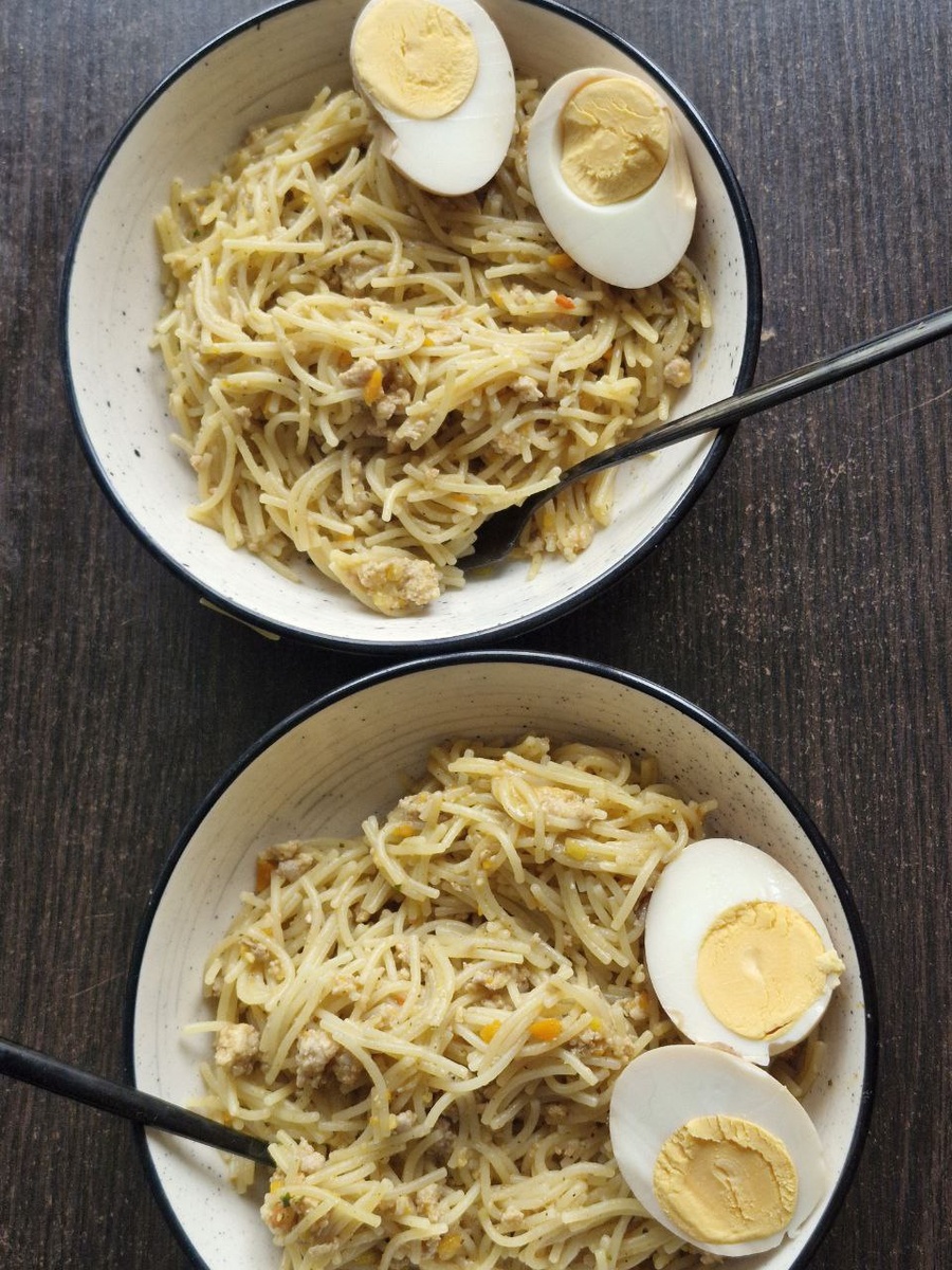 Всем, ПРИЯТНОГО АПППЕТИТА) Пять минут и вкусный,сытный завтрак готов) Две минуты закипала вода, три минуты варилась вермишель(за это время разрезала маринованные ,яйца) Откинула на дуршлаг, назад в кастрюлю,смешала со специями и фаршем) Всё, ну пусть ещё 2минуты и мы уже зв столом)) #вкусно #моясемья❤️