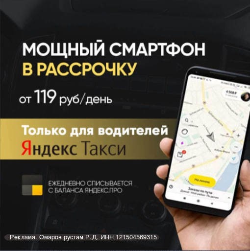 📱 Смартфон в рассрочку для водителей такси! ☕️ Прямо сегодня ты можешь взять новый смартфон в рассрочку по цене чашки кофе. 💸 Преимущества:- Без первоначального взноса!- Новый смартфон из коробки — без сколов и царапин- Получение в день заявки ⚡️ Дадим смартфон даже с плохой кредитной историей 📦 В наличии Xiaomi, Realme и Samsung — от 119 руб. в день — списания прямо с баланса Яндекс.Про. [🚀 Нажми на ссылку и ставляй заявку ](https://dzen.ru/id/65689138a0eb1c67698b054c сайте и забирай новый телефон уже сегодня! Ваш таксопарк: «Высокий спрос» 🚕 89697774262 📲 Комиссия от 1% 💰 (Подключаем ко всем фирмам такси и доставки) 🚗📦 #такси #водитель #курьер