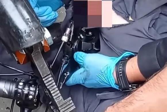 В Пинске ребёнок оказался в ловушке собственного велосипеда — тормозная ручка зажала ногу прямо на улице. Спасатели МЧС сработали оперативно: с помощью специнструмента освободили мальчика и передали медикам.