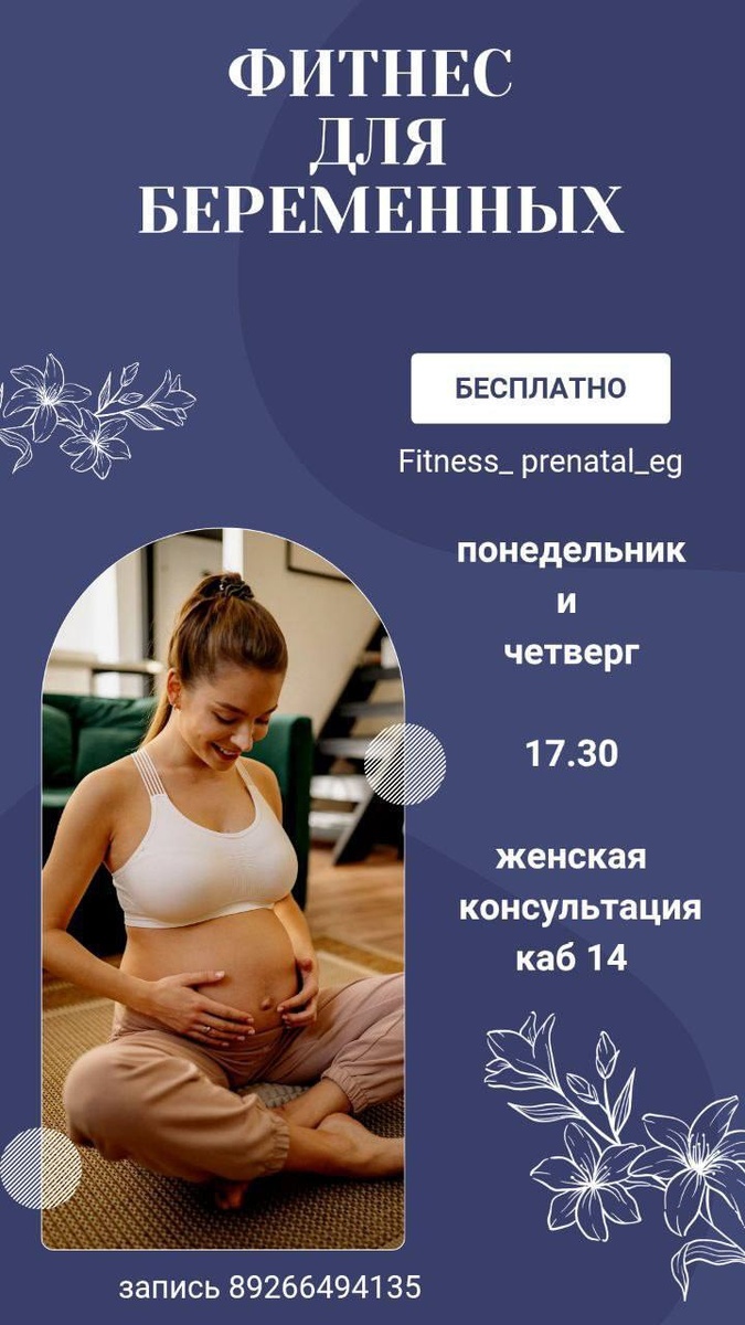 Будущих мам приглашают в школу «Здоровое материнство» - сегодня там пройдет занятие «Фитнес для беременных» Встреча со специалистом пройдет на базе Женской консультации. Помимо спортивного занятия будут разбираться важные вопросы подготовки тела к родам, мам познакомят с полезными дыхательными методиками и расскажут о том, какую пользу приносят правильные физические упражнения. Начало занятия в 17:30 в кабинете №14 18+ Запись по тел 8-926-649-41-35 Дарья Михайловна Чекаева - фитнес-тренер, специалист по грудному вскармливанию
