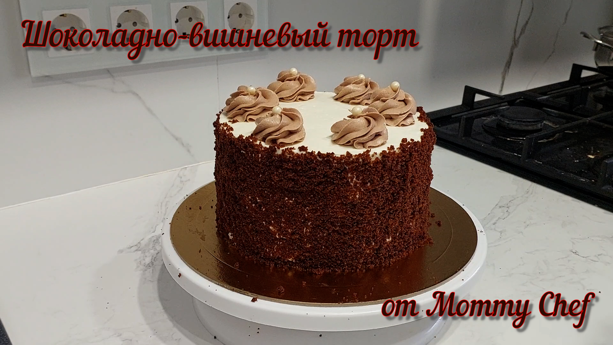 Всем привет, друзья! Хочу показать вам процесс приготовления шоколадно-вишнёвого торта. Его бархатистые шоколадные коржи в сочетании с яркой кислинкой, сочной спелой вишней и нежным послевкусием сладкого крема никого не оставят равнодушным. Смотреть видео-рецепт на Rutube Смотреть видео-рецепт на Youtube Бисквит на кольцо диаметром 16-18см: Начинка: Крем: Пропитка: Для начала приготовим шоколадный бисквит. Смешиваем сухие ингредиенты, муку, какао, разрыхлитель и соду. Яйца взбиваем с сахаром до пышной плотной пены. Далее в одной емкости смешиваем растительное масло и молоко. Продолжая взбивать массу из яиц и сахара на самой низкой скорости, вводим молоко с растительным маслом. После чего вводим сухие ингредиенты в 3 этапа и перемешиваем миксером до однородности. Тесто переливаем в кольцо и выпекаем в заранее разогретой духовке до 170° приблизительно 50 минут. Готовность проверяем шпажкой. Готовому бисквиту даем полностью остыть, затем обворачиваем в пищевую пленку и оставляем в хо