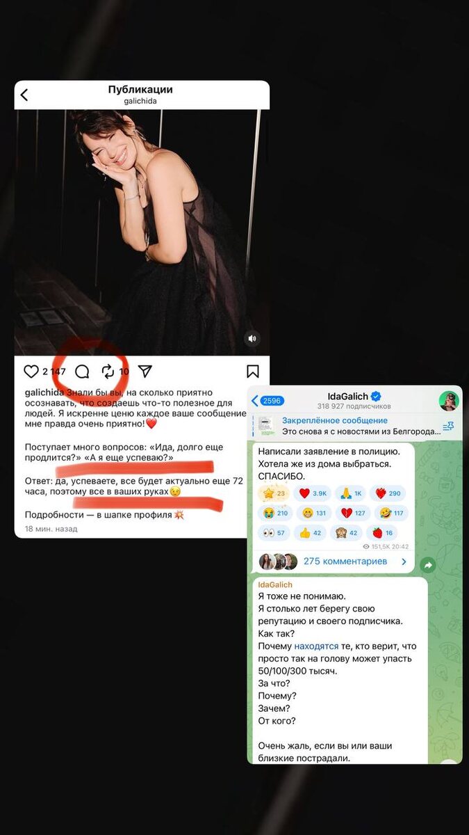 Аккаунт Иды Галич взломали сегодня по той же схеме.