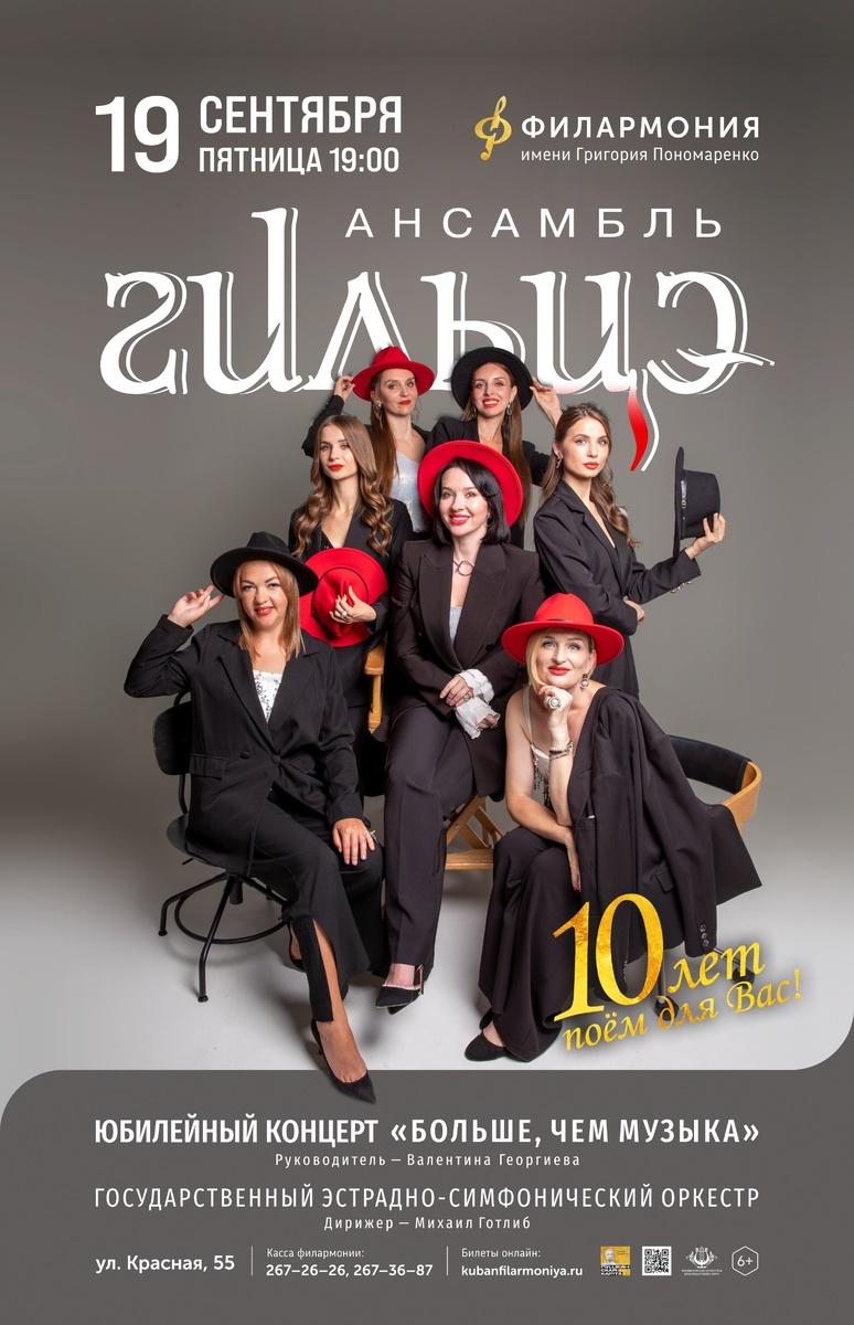 🎵ДВА ЮБИЛЕЯ 🎵 В этом году два наших ансамбля отмечают важную дату — 10 лет яркой и насыщенной сценической жизни! Это особое событие, которое объединяет талант и любовь к искусству. ✨19 СЕНТЯБРЯ в 19.00 в концертном зале филармонии состоится концерт, посвящённый ансамблю "ГИЛЬЦЕ". Вас ждут изящные и грациозные выступления солисток, которые подарят незабываемую атмосферу красоты эстрадной музыки. ✨18 ОКТЯБРЯ в 17.00 мы откроем двери для всех любителей народной музыки на юбилейный концерт ансамбля "СКРЫНЯ". Вас удивит казачий размах, харизма исполнителей и богатство народных песен — настоящее погружение в культуру и традиции! Эти юбилеи — отличная возможность ближе познакомиться с артистами, увидеть новые программы и лично поздравить солистов с этим знаменательным событием! Приглашаем вас стать частью этого праздника! БИЛЕТЫ: https://clck.ru/3C535r