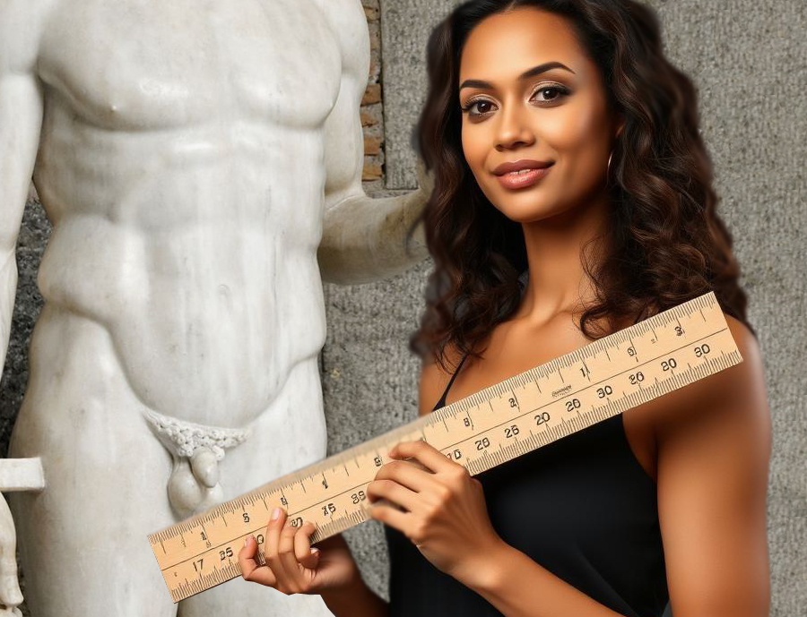 Высказывается предположение, что художники и скульпторы Античности намеренно изображали скромные размеры, чтобы не ставить мужчин в неловкое положение перед их женами и детьми. Если с красотой мужского тела они могли примириться, то соревноваться в размере достоинства им было бы уже затруднительно.