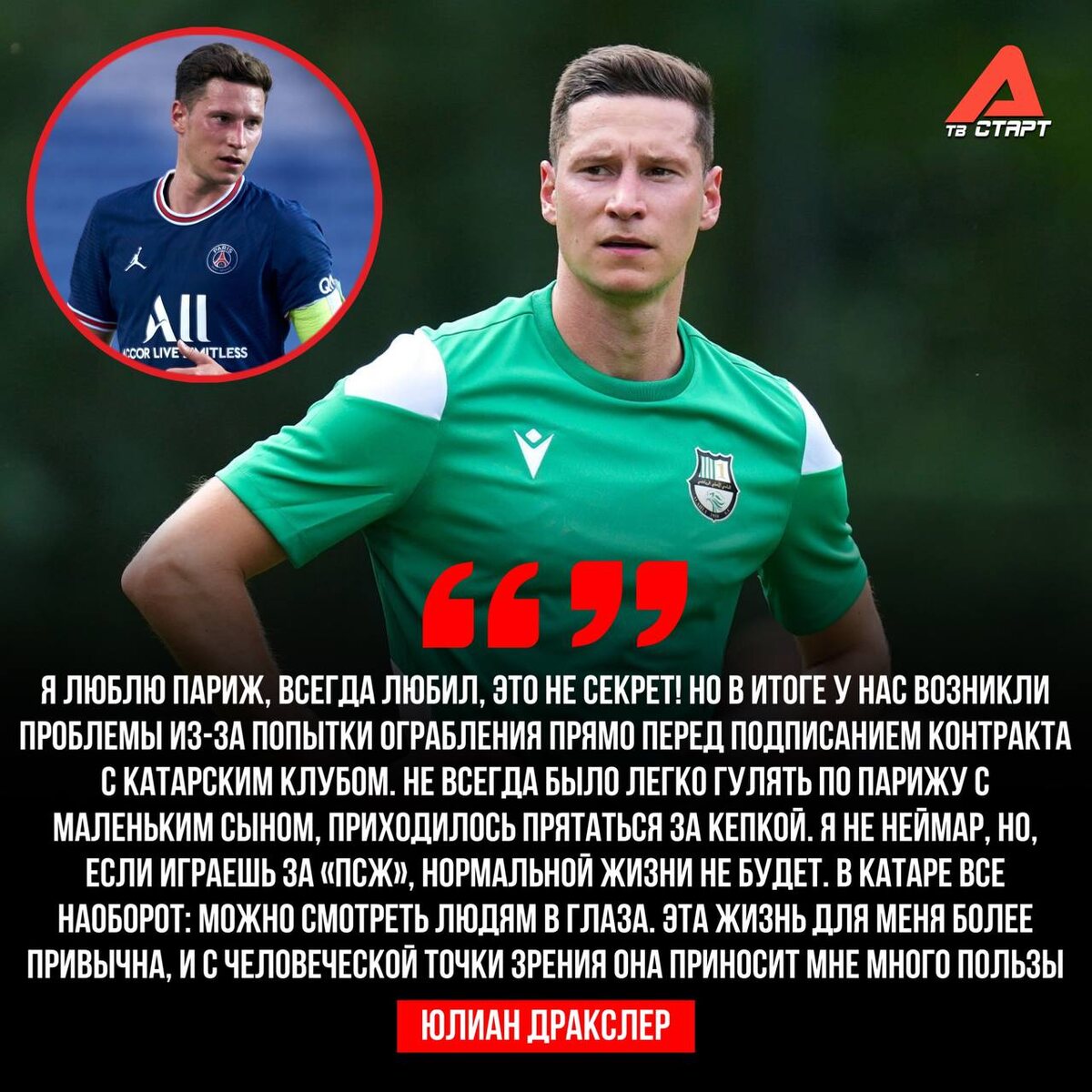 👀🗣️ Дракслер раскрыл подробности, почему в возрасте 28 лет был вынужден переехать из «ПСЖ» в катарский «Аль-Ахли». Как оказалось, дело не в деньгах. Жизнь в Париже вызывала у Юлиана дискомфорт и переживания — в Дохе всё по-другому, никаких помех игры в футбол🇶🇦 В этом сезоне немец дебютирует в азиакубках. Будем пристально следить за его выступлениях в матчах АФК Лиге Чемпионов 2 на ТВ СТАРТ📺 🔹 Наше приложение в Google Play 🔹 Наше приложение в RuStore 🔹 Наше приложение в App Store
