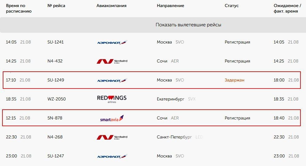 ✈️ В аэропорту Оренбурга на прилет и вылет задерживаются несколько дневных рейсов Самолет из Сочи должен был прибыть в 11:15, но ожидается в 18:00. Его вылет обратно задержан с 12:15 до 18:40. Борт из Москвы вместо 16:10 ожидается в 17:00, вылет перенесен с 17:10 на 18:00. Из Екатеринбурга прибытие самолета задерживается с 17:35 до 19:15. Соответственно, вылет из Оренбурга также сдвинется. Но пока онлайн-табло не менялось.
