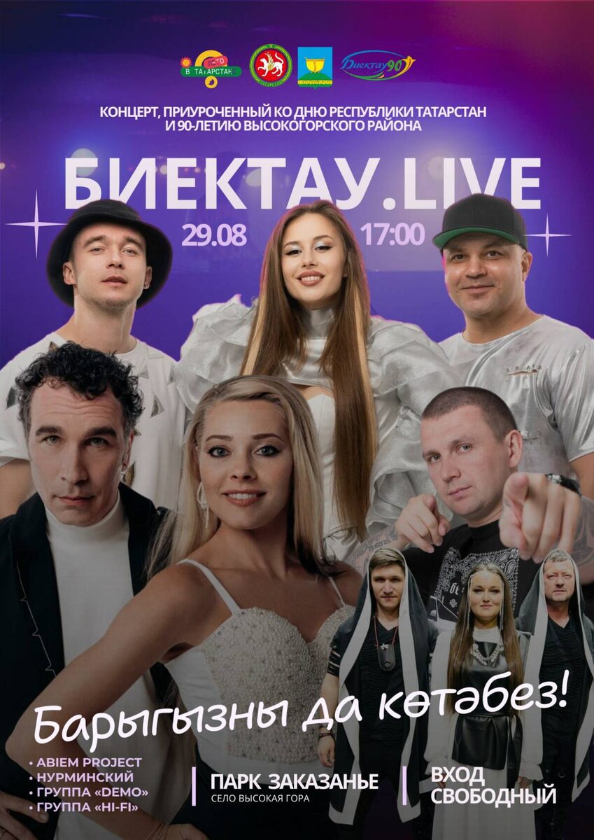 Автор: Эльза Кузнецова Глава Высокогорского района Равиль Хисамутдинов анонсировал звездный состав артистов, которые выступят на праздничном концерте, приуроченном ко Дню Республики Татарстан и 90-летию района. «На сцену выйдут высокогорские таланты, а также приглашенные артисты — легендарные группы «Hi-Fi» и «Демо», чьи хиты знает и любит не одно поколение жителей нашего района. Также перед высокогорцами выступят татарстанское трио «ABIEM Project» и популярный рэп-исполнитель Нурминский», — рассказал Равиль Хисамутдинов. Праздничное мероприятие состоится 29 августа в парке «Заказанье». Начало концерта – в 17:00. Для жителей и гостей района организуют развлекательные площадки, фуд-корт и показательные выступления Jumping Fitness Open Air. Завершится праздник салютом. Глава района подчеркнул, что вход на мероприятие свободный для всех желающих, и пригласил жителей и гостей разделить радость двойного праздника. Праздничные мероприятия пройдут в рамках акции «Лето в Татарстане». 1 июня Ра