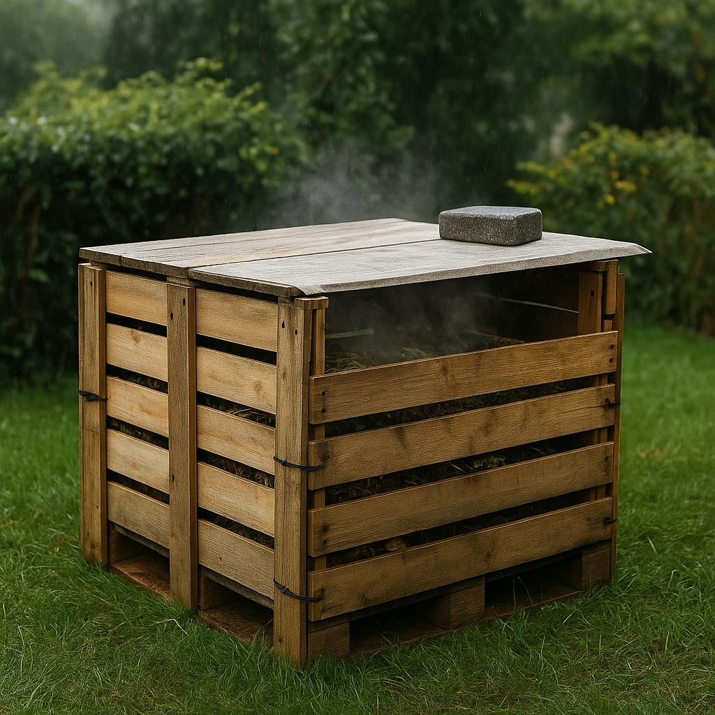 Такой компостер реально собирается «на коленке»: без гвоздей, без специнструмента и с минимальным бюджетом. В итоге — аккуратный короб, который быстро наполняется полезным «чёрным золотом» для грядок и клумб.