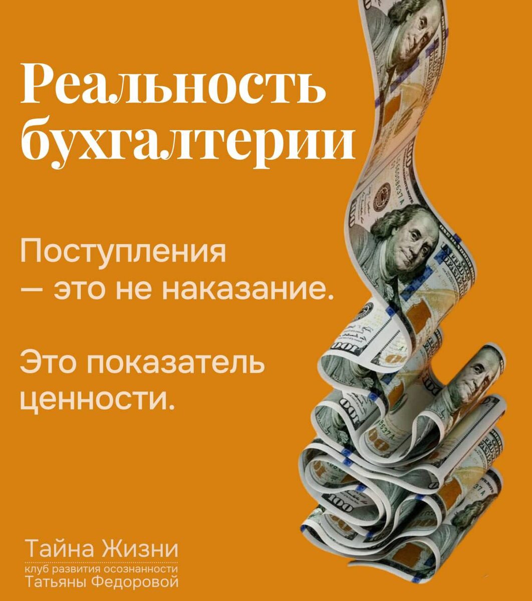 [Реальность бухгалтерии] Многие думают, что деньги — это только налоги, траты и стресс. Я думала так же. Но потом поняла: поступления — это не наказание. Это показатель ценности. 👉 Ты решаешь сам: это достаток или недостаток. В одних руках 1000 рублей — это «мало», в других — «старт бизнеса». Что выбираешь ты? Видеть цифры как «проблему» или как точку расширения? CF, JCF, GOODJ Татьяна Фёдорова