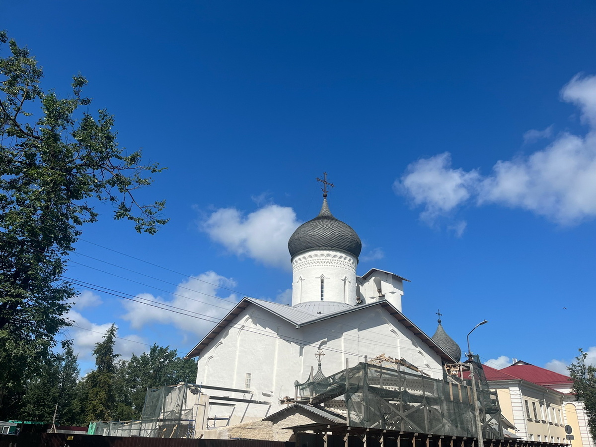 В августе 2025 года специалисты АНО «Возрождение объектов культурного наследия Пскова (Псковской области)» приступили к монтажу декоративной плитки на подпорные стены, выстроенные в месте понижения грунта вокруг церкви. Понижение грунта до исторической отметки было выполнено после завершения работы археологов. Посетители храма после окончания благоустройства в буквальном смысле смогут «погрузиться в историю», спустившись по выстроенным лестницам на площадку перед храмом, которая соответствую периоду строительства церкви святителя Николая Храм святителя Николая Чудотворца (со Усохи) строился дважды. Первое здание было заложено в 1371 году: главный храм древнего Опоцкого конца возвели с двухпролётной звонницей. На месте, где была построена церковь, было высохшее болото, от того и возникло название «со Усохи». Археологи открыли остатки фундаментов этого периода. После неоднократных пожаров в XV веке церковь была разрушена. В 1536 году на ее месте был построен современный храм. Как говорит