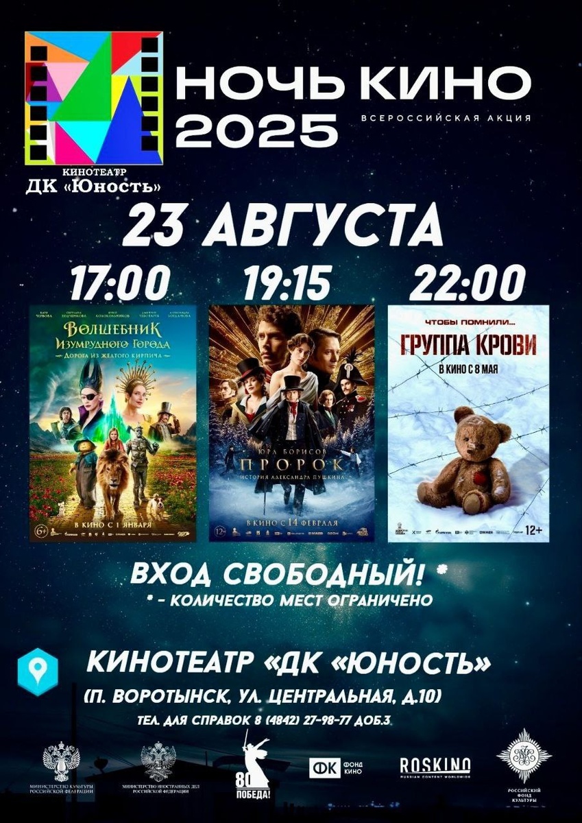 🍿 23 августа в кинотеатре «ДК «Юность» состоится Всероссийская акция «Ночь кино 2025»
