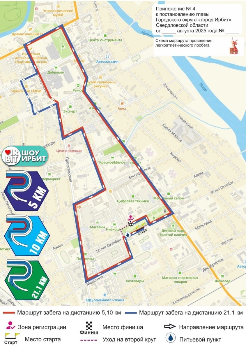 Схема маршрута проведения легкоатлетического пробега 23 августа в Ирбите