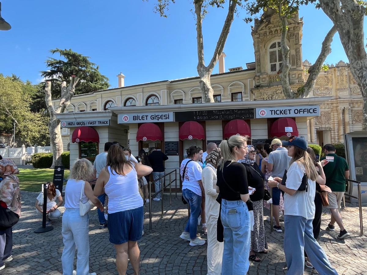 Итак, в своих рассказах я подошла к самому большому объекту, который я увидела в эту свою первую поездку в Стамбул. Я не сходила внутрь дворца Копкапы , только прошла по доступной бесплатной территории, но зато компенсировала то свое упущение этим осмотром! И посмотреть здесь есть на что! ( доехала до него на трамвае Т1 до конечной остановки Кабаташ). Пришла к кассе, очереди практически нет, быстро купила билет. Оплатить можно как по карте, так и наличными. Билет для туристов стоит 1800лир( 3600₽) И вот захожу на территорию. Это самое ухоженное место, которое мне довелось увидеть в Стамбуле. Подстриженные кустарники и газоны, высаженные цветы, фонтаны, скульптуры Далее увидела необыкновенной красоты ворота Возможно, через эти ворота встречают особо именитых гостей. Ведь здесь некоторые помещения до сих пор используются для официальных мероприятий — например, здесь находится кабинет президента страны. И здесь 15 мая в Стамбуле проходили переговоры между Россией и Украиной. П