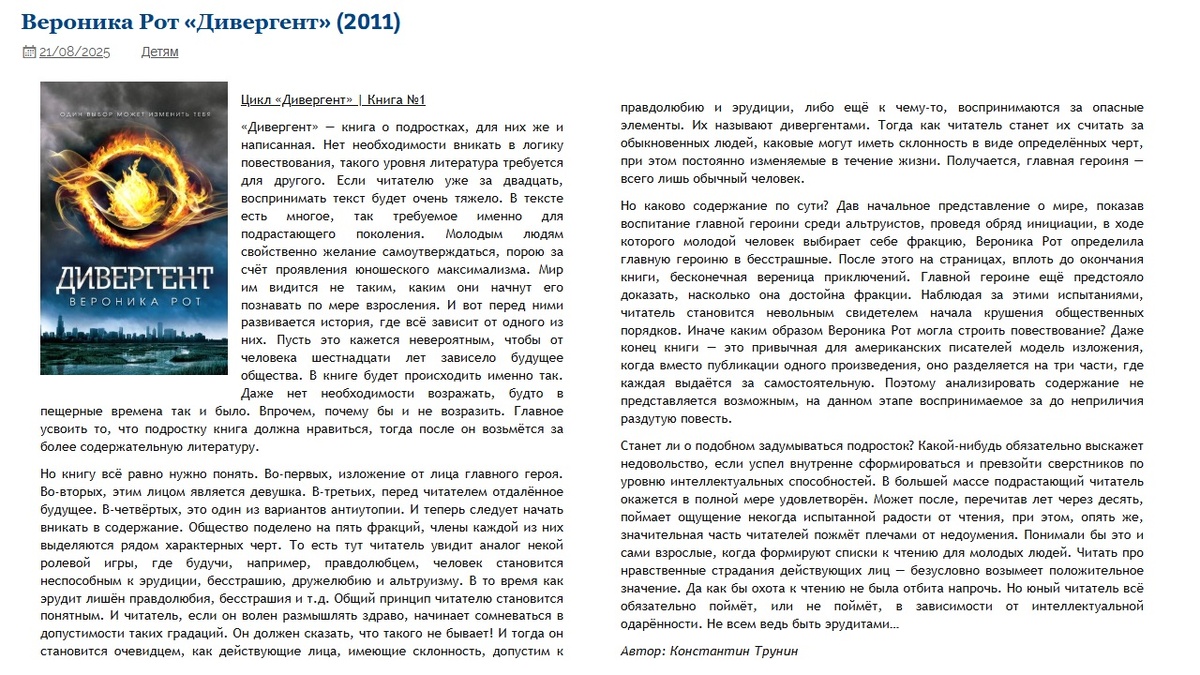 Вероника Рот «Дивергент» (2011) | Критика