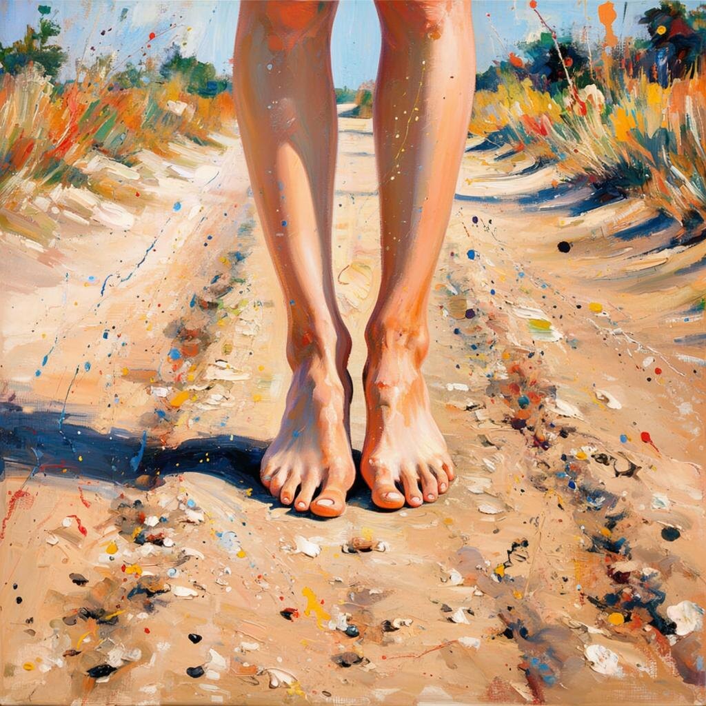 Деревья по краям узкой грунтовой дороги стояли как стражи, их кроны сплетались в густой зелёный шатёр, сквозь который пробивались редкие солнечные лучи. Они играли на пыльной земле, создавая причудливые узоры, напоминающие расплавленное золото. Пыль под ногами Екатерины была прохладной, и каждый шаг босых ног отзывался приятным покалыванием.