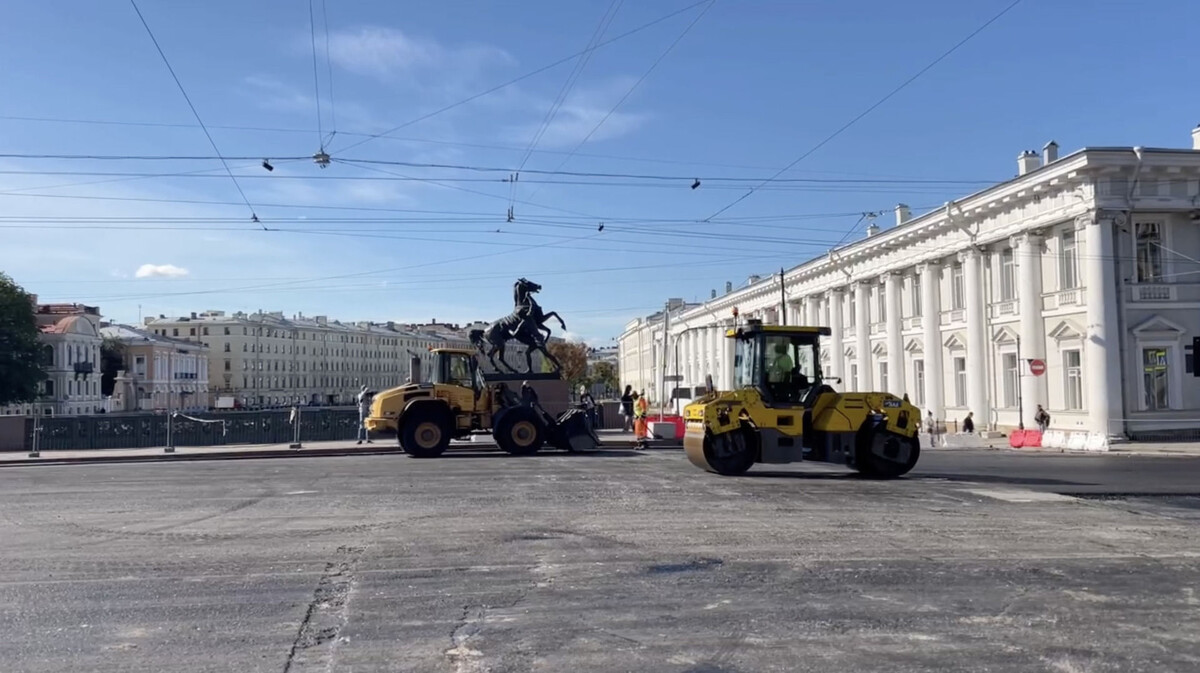 В Петербурге началась укладка асфальта на Аничковом мосту