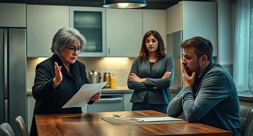 Свекровь плюхнулась на стул, даже не сняв пальто, и выложила на стол какие-то документы: