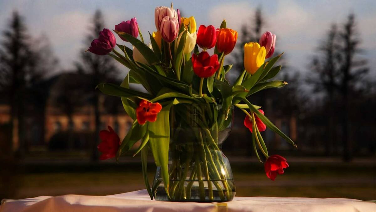 Цветочные магазины нынче пугают ценами. Но: Сегодня мы расскажем работающие советы по экономии на цветах. Понятно, что можно заменить цветы съедобным букетом, горшечным растением и икебаной из веток. Но в данной статье говорим только о живых цветах. Естественно, в статье не будет никаких лайфхаков с закупкой на оптовой базе. Те, кто это советуют, никогда там не были. Не знают, что потом эти «оптоцветы» надо довести до внешнего вида. На оптовых базах вы найдёте только бутон на стебле. Его надо правильно обрезать, помочь распуститься и т. д. Если есть время перед праздником, хотя бы 4 месяца, займитесь выгонкой тюльпанов. Звучит страшно, но это тот способ, при котором на выходе вы точно получите букет из красивых живых цветов, потратив совсем немного. Наберите луковиц разных сортов, обрежьте бутылки от воды, насыпьте туда землю (купите или накопайте на даче). После посадки – поливайте и ждите. Букет из тюльпанов всегда смотрится нежнее, если выбрать скромную упаковку. Найдите лист пергам
