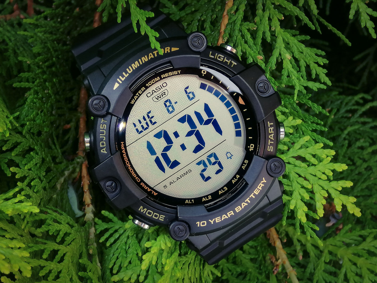 Не знаю, будет ли модель презентабельно выглядеть на вашем запястье через 10 лет… Хотя почему нет? Моя AE-1000W прекрасно себя чувствует, если не считать стертую серую краску с накладки. Стекло отполировано, под защитной пленкой, ремешок немного потертый, но не критично. Похожая картина ждет вас и с нашим героем обзора, если не поленитесь подобрать защиту для акрила. А батарея CR2032 может отработать еще и дольше.