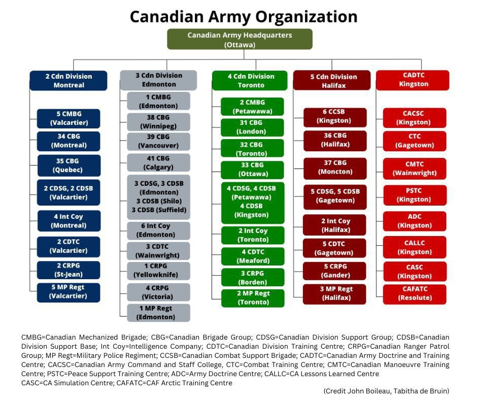 🇨🇦 Организационная структура сухопутных войск Канады, включающая основные подразделения и их дислокацию. @poisk_mil https://t.me/geochronic | https://geochronic.ru