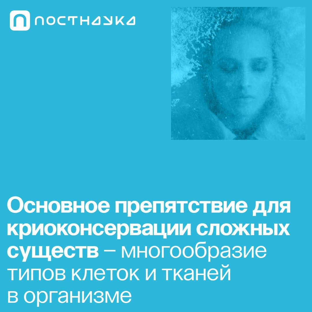 Межклеточные контакты чувствительны любым воздействиям, поэтому необходимо потратить много времени и сил на то, чтобы научиться не повреждать взаимодействие клеток в органах и тканях при криоконсервации. К каждому типу клеток нужен свой подход, и иногда оптимальные режимы криоконсервации для них различаются. Если не учесть это, успешное замораживание отдельных органов и организмов окажется невозможным. Сложно сказать, когда эта задача станет осуществимой, однако ключом к решению проблемы может стать разгадка феномена анабиоза. Гид о науке фантастических технологий