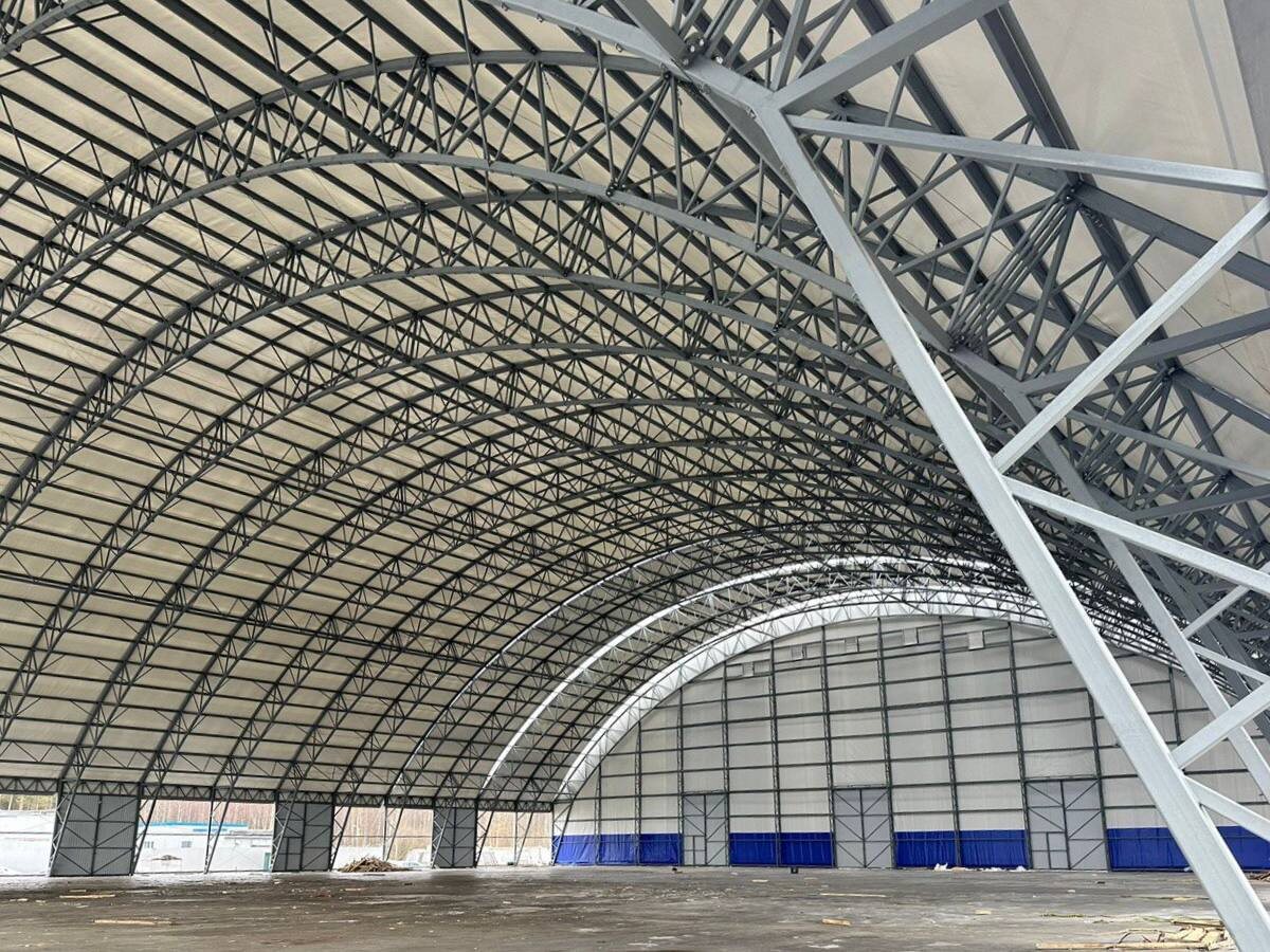 Конструкция кровли ангаров выполняется по прогонной системе, которая равномерно распределяет нагрузку. ✔️ В поперечном направлении ангара натяжка тента выполняется механическим способом с помощью трубок натяжения и натяжителей тента, обеспечивая равномерное распределение нагрузки и плотное прилегание. ✔️ В продольном направлении натяжка выполняется с применением стального троса, который способствует расправлению тентовых полотен между пролетами ангара. Стыки полотен герметично закрываются с помощью контактной ленты на липучке. Благодаря этому: ❌ Исключается провисание полотна со временем. ❌ Не образуются «снеговые мешки» зимой, что повышает безопасность, снижает риски деформации и способствует сходу снега с кровли. ✅ Уникальная технология монтажа тентовых полотен обеспечивает надежное крепление к металлокаркасу и стабильное натяжение. 💡 Наши инженеры за 10 лет работы разработали множество инновационных решений, обеспечивающих максимальную безопасность и надежность ангара. Спроектируем