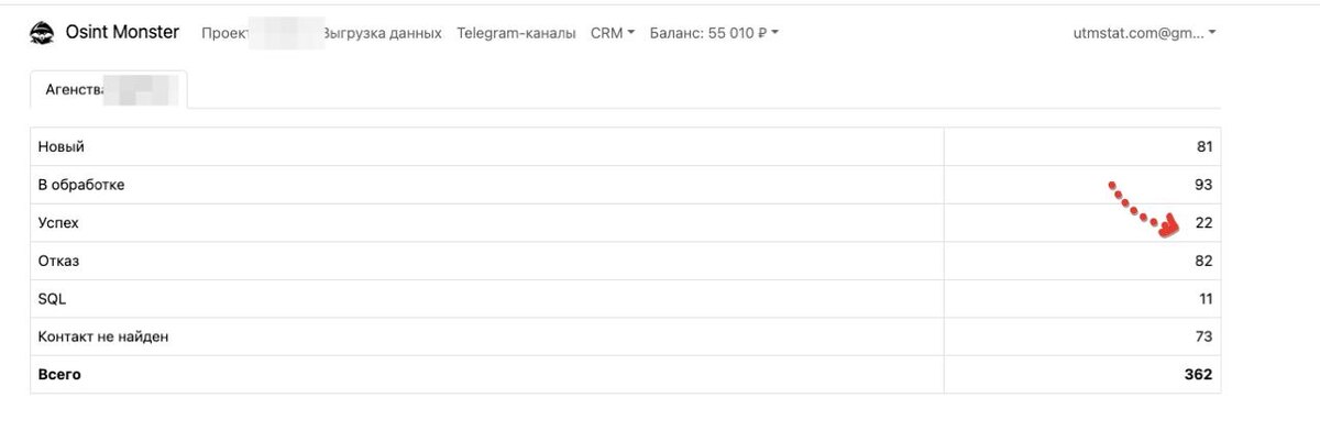 osintmonster выгрузит нужный xls файл для продавца, продавец там проставит статусы обшения и можно обратно этот файл загрузить в osintmonster для такой статистики.