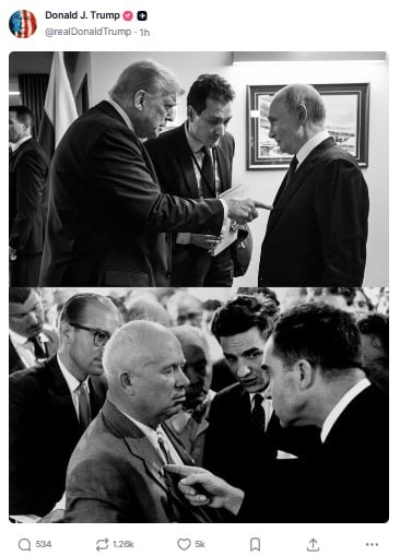 🇺🇸🇷🇺 Президент США Дональд Трамп опубликовал фото с президентом России Владимиром Путиным на Аляске вместе с фото бывшего главы