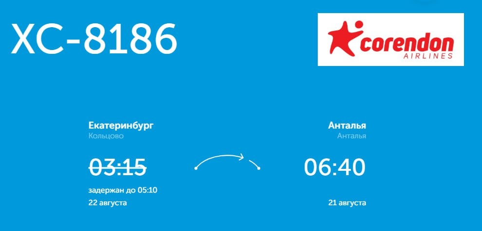 Рейс Corendon Airlines из Екатеринбурга в Анталью задерживается больше чем на сутки