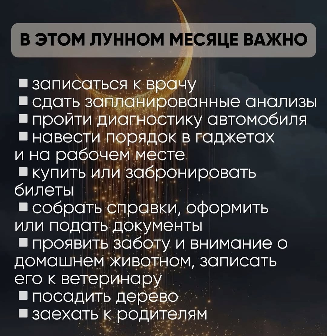 23 августа в 09:06 по мск нас ожидает удивительное новолуние в знаке Девы. Это время планирования (цели, проекты, финансы), наведения порядка (дом, работа, здоровье), внедрения привычек (режим, питание, спорт).Энергии этого периода настраивают нас на практичность, внимание к деталям и стремление к совершенству. Дева, как знак земной стихии, вдохновляет нас заниматься вопросами здоровья, быта и служения другим. Энергия новолуния в Деве В это новолуние нас ожидает необычайное чувство ясности и реалистичного восприятия. Отличное время для планирования и анализа своего поведения, здоровья и отношений. Мы можем ощутить в себе стремление к порядку и организованности, что, безусловно, будет полезно для избавления от всего лишнего. Этот период подходит для практических изменений в жизни, а также поиска новых методов для самосовершенствования. Рекомендации на новолуние: Предостережения: В это время будьте осторожны с критикой и перфекционизмом. Ожидания от себя и других могут быть слишком высо