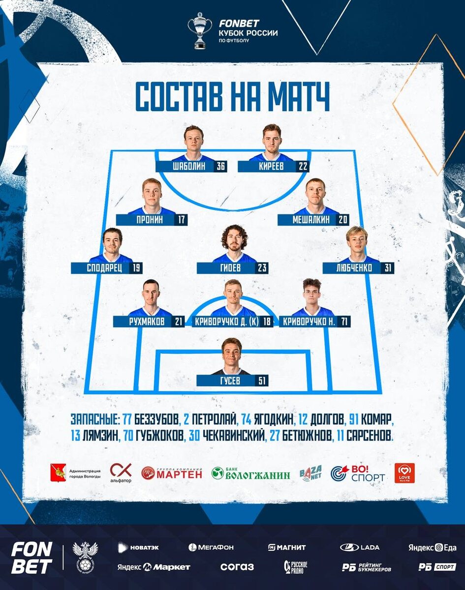 ⚡️ Наш состав на кубковый матч против «Динамо» (Санкт-Петербург