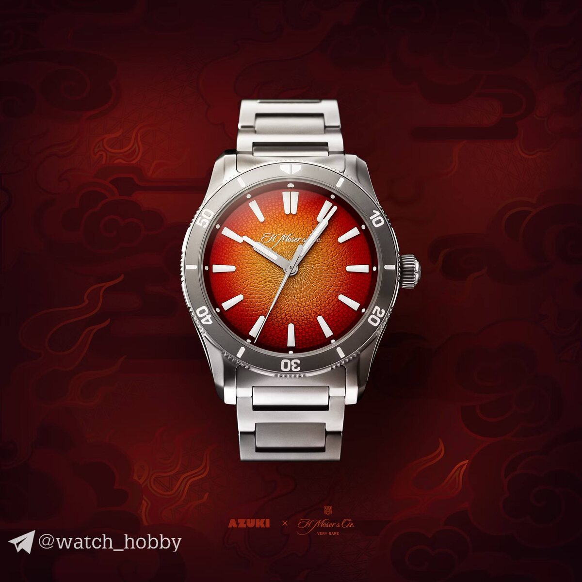 H. Moser & Cie. x Azuki Pioneer Centre Second Fire: огненная лимитка. Аниме добралось и до Мозера. Но это совсем не плохо, наоборот. Супер привлекательная новинка, правда очень ограниченная, на всех не хватит. Часы вдохновлены аниме-вселенной Azuki. Что с характеристиками: - Корпус из титана - Браслет из титана - Диаметр корпуса: 40 мм - Высота корпуса: 11.4 мм - Сатиновая и зеркальная полировка - Сапфировое стекло с антибликом - Водозащита 120 метров - Автоматический калибр HMC 200 с запасом хода в 3 дня «Огонь воплощает грубую волю бунтарского духа. Огонь не просит, он берет». Уже захотелось их примерить, не правда ли? На циферблате нет ничего лишнего, это просто замечательно, никаких дат и прочих усложнений. Только 3 стрелки в фирменном дизайне и крупные метки, заполненные люмом - считать время проблемой не будет даже в темноте или сумраке. Безель тоненький, ушки короткие - за счёт этого циферблата получилось достаточно много. Градиентный цвет начинается оранжевым оттенков в це