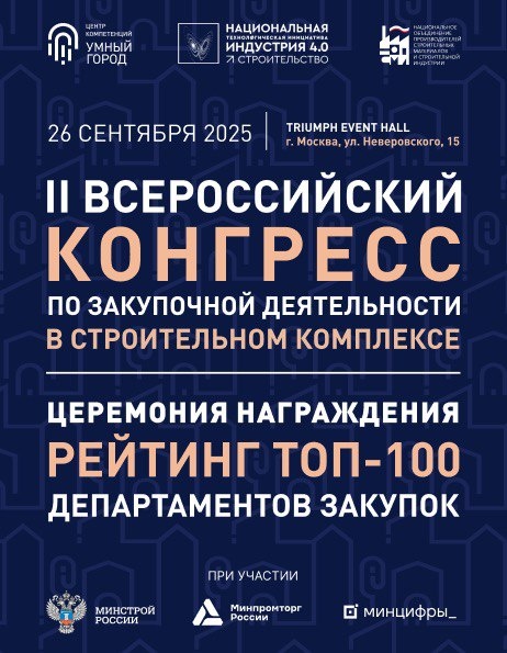 🪖 II Всероссийский Конгресс по закупочной деятельности в строительном комплексе 26 сентября 2025г. в Москве состоится финальное событие года в сфере закупок. 🔵 100+ директоров по закупкам, проектированию и строительству крупнейших строительных компаний - на одной площадке; 🔵 30+ спикеров - представителей профильных органов власти, лидеров мнений, топ-менеджеров крупнейших строительных организаций России; 🔵 Основные темы для дискуссии и мероприятия в рамках Конгресса: 🔵 цифровизация и новые практики закупок в строительстве; 🔵 взаимодействие заказчиков и поставщиков; 🔵 питч-сессия инновационных проектов; 🔵 выставка решений для «умного города». ❗️ Конгресс завершится церемонией награждения Национального рейтинга «Топ-100 департаментов по закупкам» и гала-ужином. Подброности и регистрация.