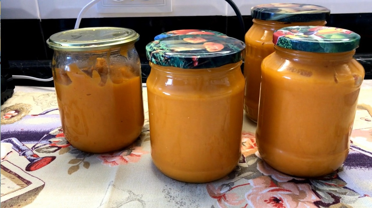 В этом рецепте нет чеснока, уксуса и томатной пасты. Когда я готовила, сомневалась, но результат превзошел ожидания: закуска получилась очень вкусной, воздушной и нежной, напомнив мне вкус детства. Думаю, одной этой заготовкой дело не ограничится, так как этих баночек мне не хватит. Для приготовления: - Кабачки – 3 кг – Отварите до готовности. - Морковь – 1 кг – Отварите до готовности. - Помидоры – 1 кг - Лук – 1 кг - Подсолнечное масло – 150 мл - Соль – 3 ч. л. - Сахар – 3 ст. л. Уксус не требуется, закуска прекрасно хранится. Кабачки очищаю от семян и кожуры, нарезаю небольшими кусочками. Так они быстрее проварятся и станут мягкими. Во время варки немного подсаливаю: так овощи получаются вкуснее. Морковь тщательно мою, очищаю и варю в подсоленной воде до готовности. Кабачки и морковь готовы. Я кладу кабачки в дуршлаг, чтобы убрать лишнюю влагу. Теперь помидоры нужно измельчить и протереть через сито, чтобы удалить семена и кожуру. Беру кастрюлю с толстыми стенками, наливаю на дно под